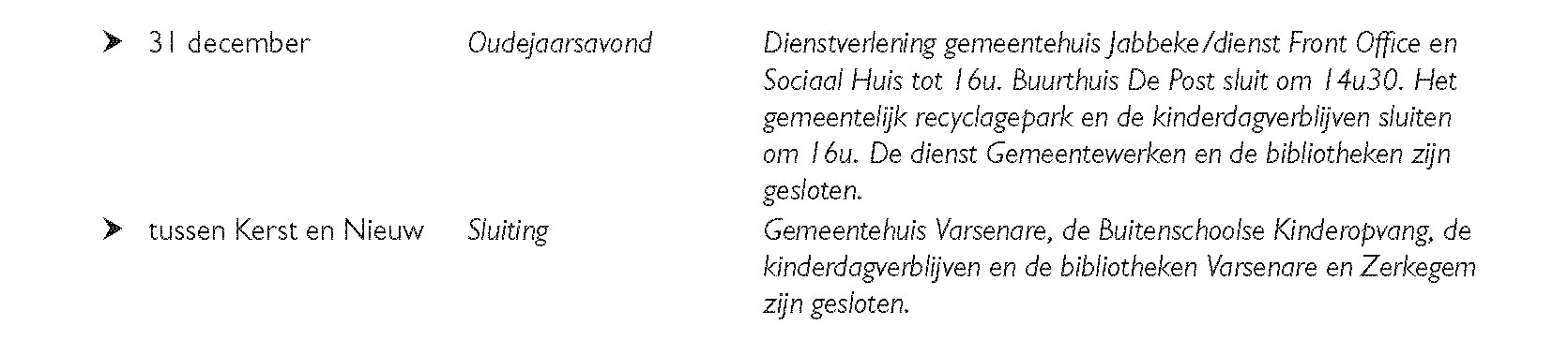 Graag geven we de dienstregeling en collectieve sluitingsdagen mee voor het jaar 2025.