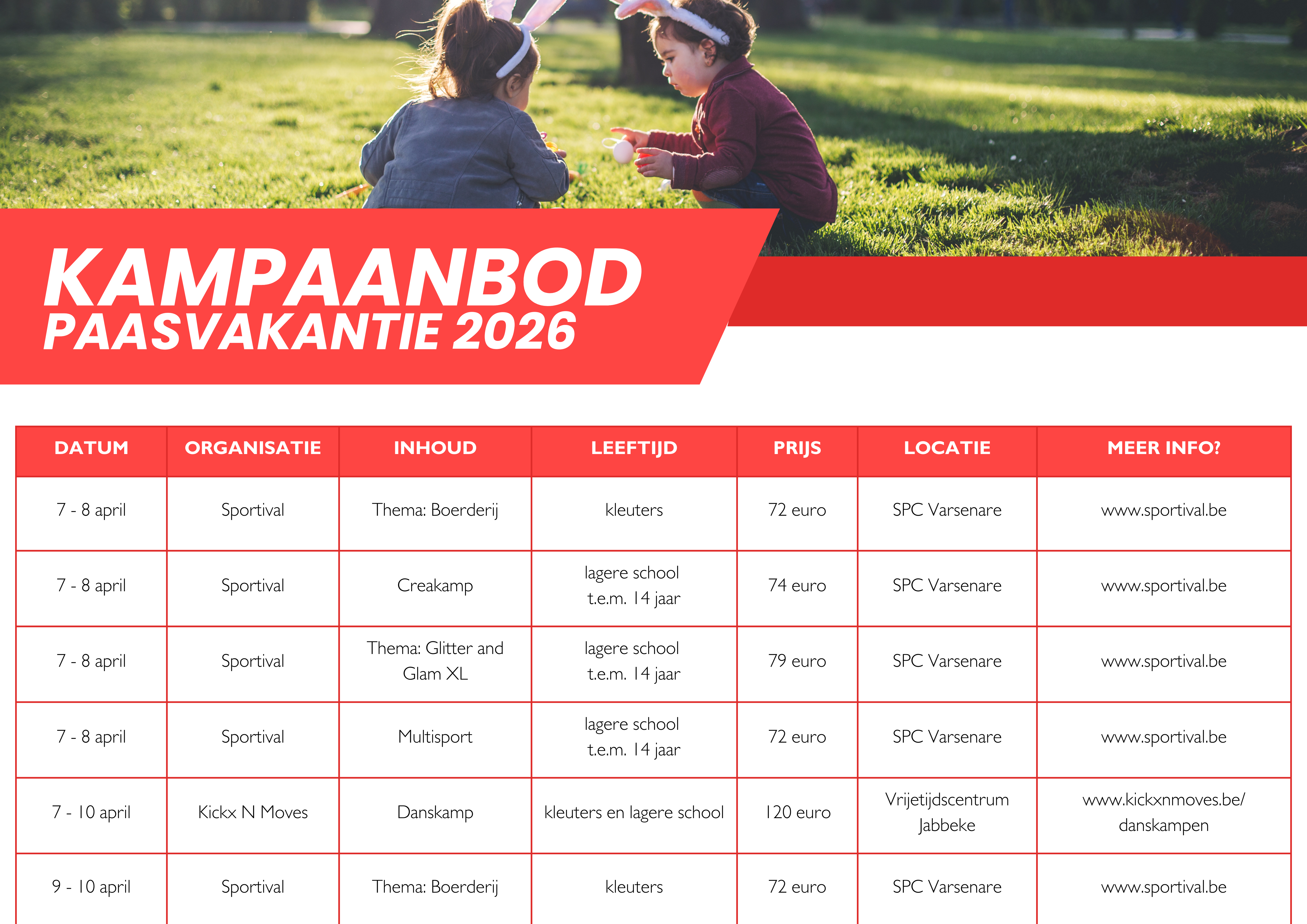 Ontdek hier alle kampen voor de paasvakantie 2026.